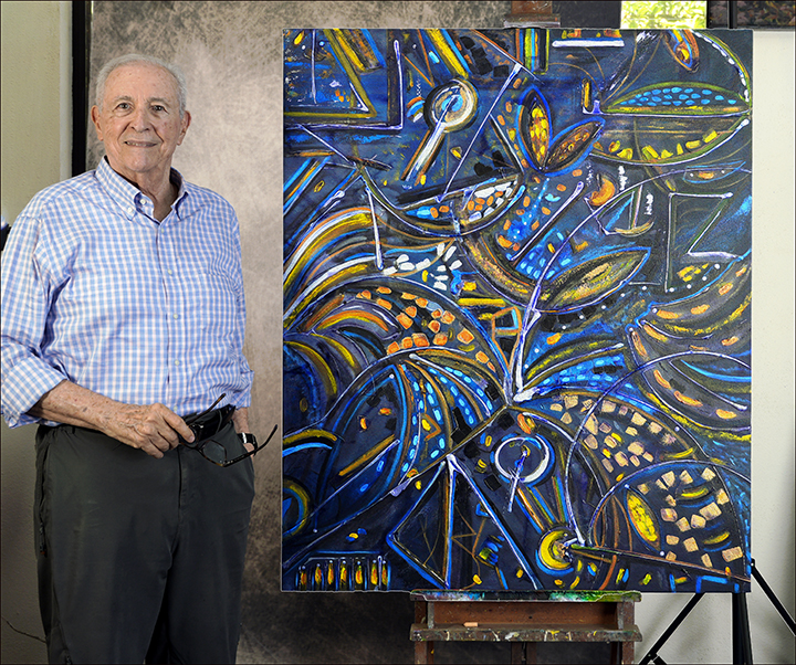 INTRODUCCIÓN A LA ALQUIMIA II (Acrílico, 120 x 100 cm. 2026), parte de un abordaje de fusión onírica orientada a la búsqueda de la piedra filosofal del arte. La obra se nutre de visiones cósmicas y emotivas, donde lo imaginario y lo sensible se entrelazan en mi interior. Su acento experimental parte de un laboratorio de sueños, espacio simbólico donde las imágenes, las emociones y la materia pictórica se conjugan para desentrañar los símbolos y misterios.