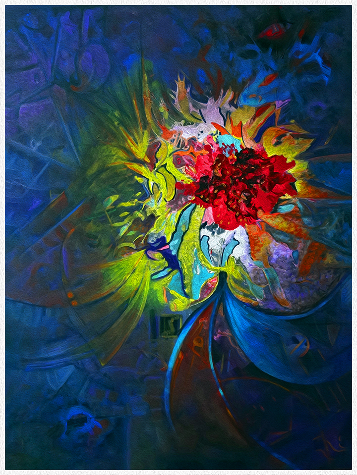 Este cuadro, GLOW IN THE BLUE (acrílico sobre lienzo, 200 x 150 cm, 2026), rinde homenaje a una hermandad de resonancias marinas que comenzó a forjarse hace más de seis décadas. Era el calor del verano en las polvorientas calles de Corinto, Nicaragua, cuando —entre los primeros y tímidos escarceos con las muchachas del puerto— nos encontramos los tres, rivales entonces en la conquista del favor de aquellas jóvenes doncellas.