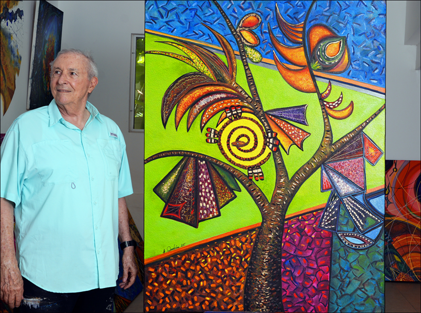De los destacados intelectuales Cairo Amador, Iván Uriarte, Ronaldo Tenorio y Humberto Avilés. Estos poetas y escritores hicieron un extensivo recorrido por las salas de mi pequeña galería de arte, examinando en forma crítica más de 100 obras.