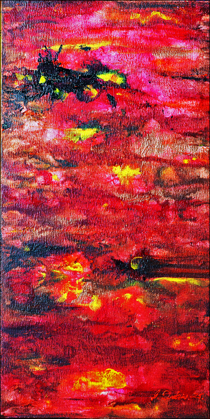En mis sueños de infancia, repaso los momentos de pesca con mi padre en el puerto de Corinto. Siendo niño siempre quise que los peces, emergiendo de las aguas, pudieran volar. Y aunque hay algunos peces voladores en otros sitios, yo nunca los vi. Pero los seguí soñando, hasta que pude hacerlos realidad en mis lienzos.