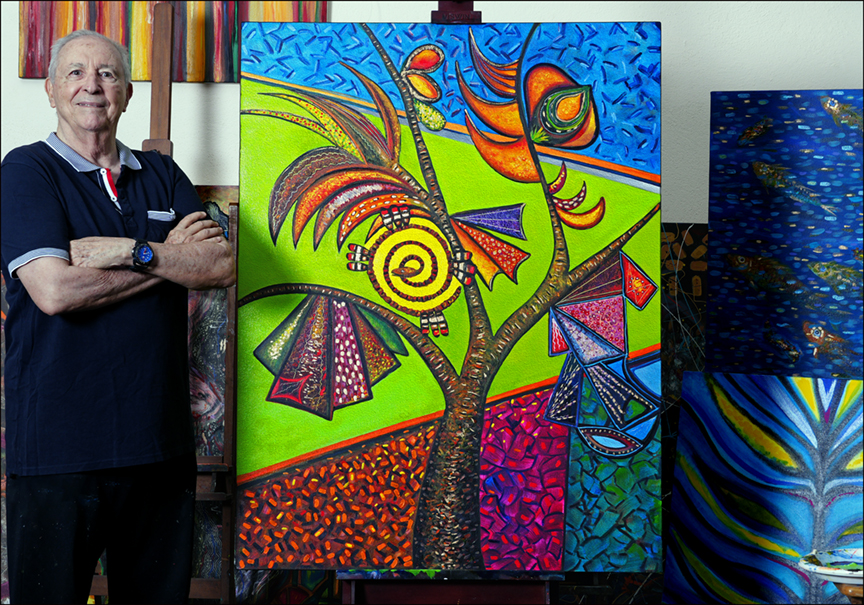 Busqué, desde la baranda del barco para turistas, los peces, y no había. También busqué el azul de las aguas, y solo vi aguas turbias, lodosas. Este recuerdo amalgamado de visiones retrógradas, una especie de sincretismo onírico, me lleva hasta el lienzo sin mayores preámbulos.