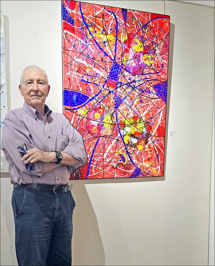 Con mi obra PRESAGIO (Acrílico sobre lienzo, 115 x 83 cm. 2025), en la VI Feria de Arte de la Fundación Ortiz Gurdian. Managua, Nicaragua.